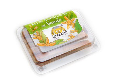 Flaky pastry crunchy bran biscuits, covered in vanilla.