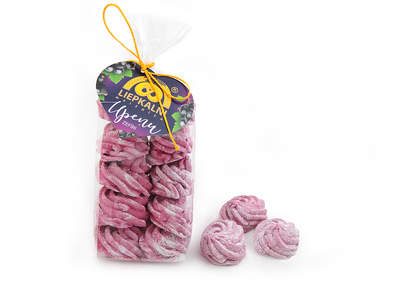 Delicate little marshmallows made from blackcurrant puree here in Liepkalni. Handmade!