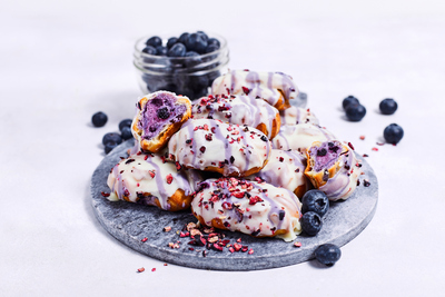 Mazie melleņu eklēri-pildījumā saldā krējuma/meža melleņu krēms.