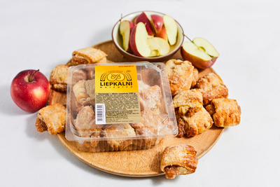 A small yeast dough bun, shaped like a paw, with a dreamy sweet and sour caramel-apple filling. Light and airy, but with a crunch.