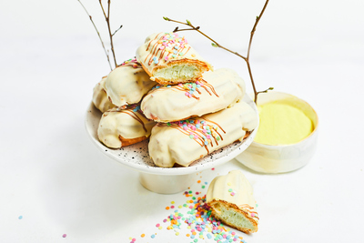 Spring eclair with rhubarb filling