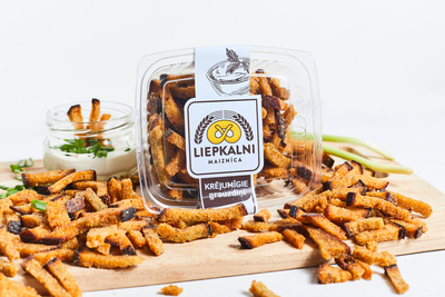 Gatavoti no garšīgās un pircēju iecienītās Liepkalnos ceptās saldskābmaizes, to sagriežot īpaši mazās strēmelītēs un rūpīgi apgrauzdējot un papildinot ar garšvielām. Īpašu garšas niansi piedod krējuma garša!