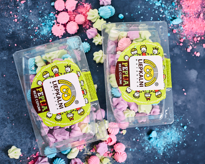A selection of flavors, one pack containing 4 colorful flavors -raspberry, blueberry, blackcurrant and apple.