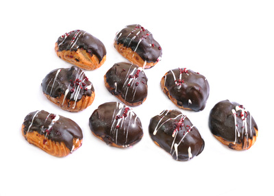 Mini Eclairs with Summer Berry filling, covered with dark chocolate.