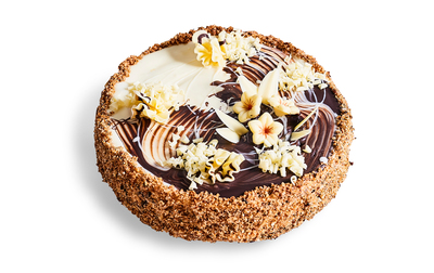 Chocolate sponges sandwiched together with mango icing with real mango pieces.